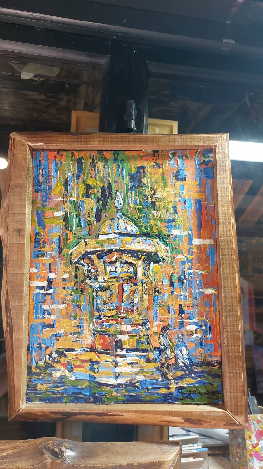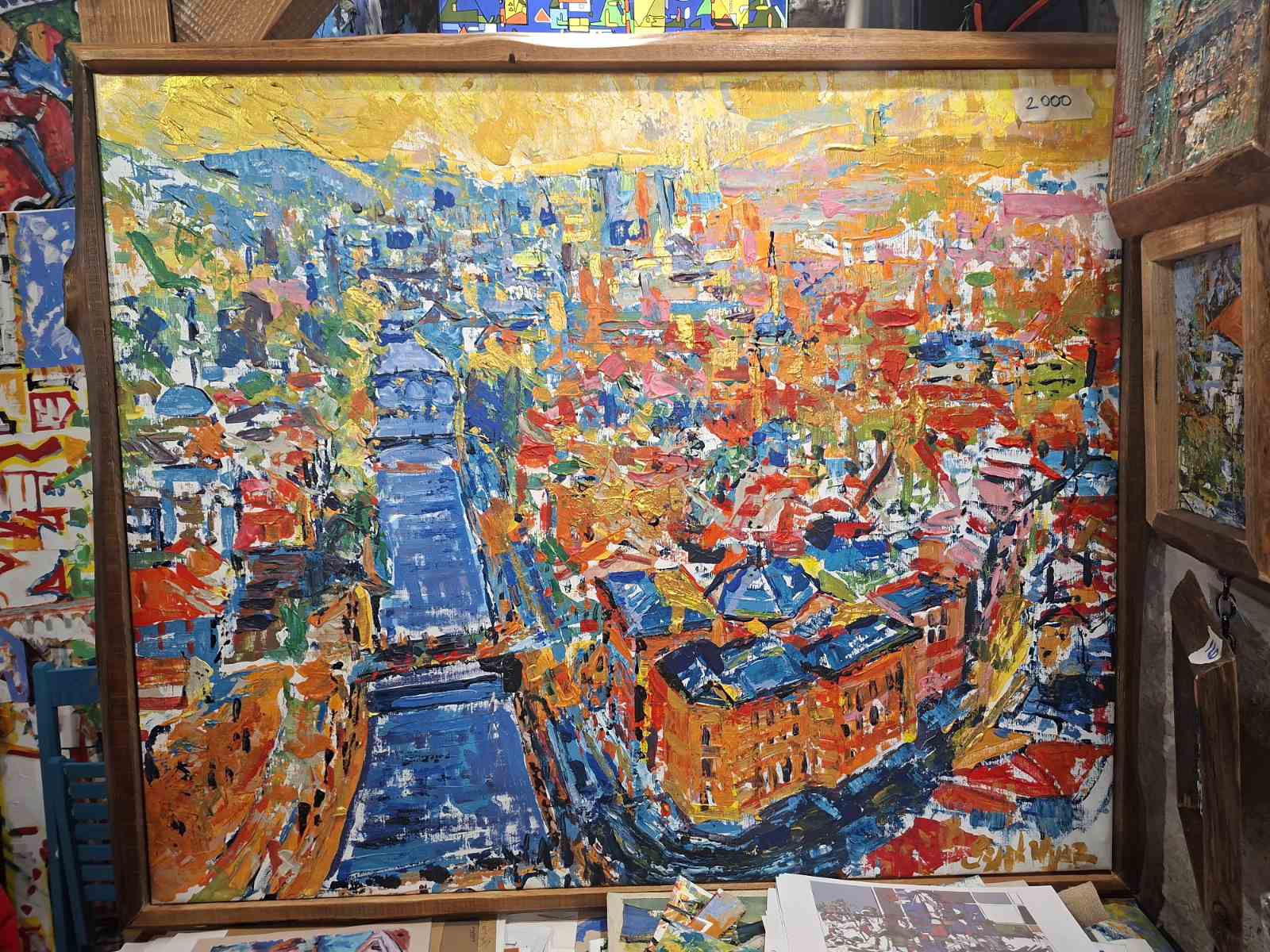 Na ovoj slici prikazao sam Sarajevo iz ptičije perspektive – grad koji diše svjetlošću, bojom i energijom života. U zlatnim odsjajima jutra i plavetnilu rijeke otvara se mozaik krovova, ulica i sjećanja, rasutih potezima špahtle i ritmom boje. Sve je u pokretu – kao da grad pulsira sopstvenim srcem, između stvarnosti i sna. Asocijacije i oblici prelaze u apstrakciju, jer sam svjesno pojednostavio formu da bi se osjećaj mogao vidjeti jasnije od same slike. Ovo je Sarajevo koje ne miruje – ono zrači, gori, i širi svoju toplinu kroz svaki sloj boje.